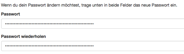 Du hast nun die Möglichkeit einige persönliche Einstellungen zu ändern. Scrolle runter, bis du die beiden Passwortfelder erreichst. Trage hier dein neues Passwort ein und bestätige es in dem Feld darunter.