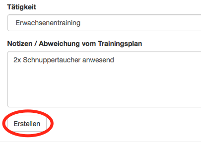 Wähle die Kategorie der Tätigkeit aus. Falls du möchtest, kannst du noch ein Kommentar eintragen, falls sich z.B. der Trainingsplan geändert hat, oder besondere Ereignisse eingetreten sind.