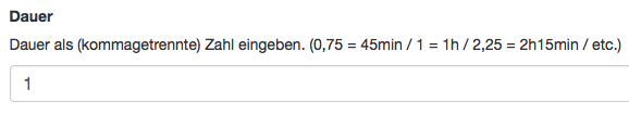 Trage nun die Dauer der Einheit ein. Die Dauer wird als kommagetrennte Zahl eingegeben.
